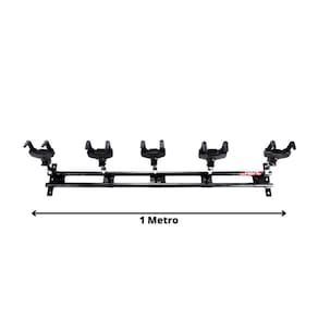Suporte AGSB5 suporte de parede para 5 instrumentos em barra de 1m com sistema de travamento automático com o peso do instrumento. Regulagem bilateral, pintura eletrostática e tratamento antiferrugem.