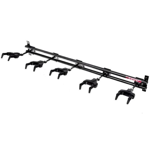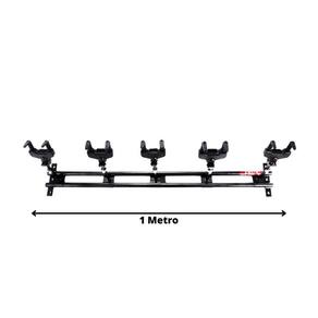 Suporte AGSB5 suporte de parede para 5 instrumentos em barra de 1m com sistema de travamento automático com o peso do instrumento. Regulagem bilateral, pintura eletrostática e tratamento antiferrugem.