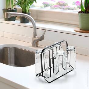 Suporte para 6 Copos Arthi - Piatina Black para Bancada O Suporte para 6 Copos da Arthi combina a resistência da piatina com a elegância da cor preta. É o acessório ideal para secar e organizar seus copos na bancada de forma vertical e acessível, adicionando um toque moderno à sua cozinha ou copa. Características Físicas e Funcionais: Design Moderno: Acabamento na cor preta (Black) sobre a robusta estrutura em piatina, garantindo um visual contemporâneo. Capacidade: Projetado para armazenar até 6 copos de forma segura e vertical. Uso de Apoio: Estrutura estável, perfeita para ser utilizada sobre qualquer superfície plana na cozinha ou copa. Marca: Arthi (Ref. 2508). Especificações Técnicas: Capacidade: 6 copos. Cor: Preto (Black). Dimensões: Comprimento 24,3 X Largura 16 X Altura 19,2 cm. Material: aço cromado.