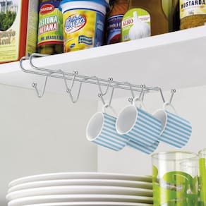 Suporte de encaixe para pendurar até 8 xícaras de chá ou café em armários e despensas. Produzida em material resistente. De fácil instalação, dispensa o uso de parafusos. Este suporte deixa o ambiente mais bonito e possui um design moderno que combina com qualquer ambiente.