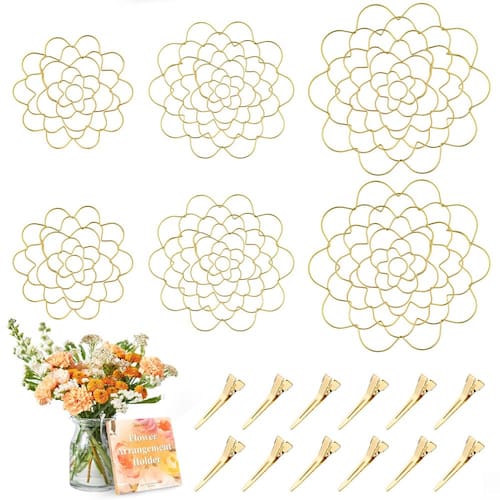 - Função principal: O organizador circular de capas para sapos é uma ferramenta prática que pode melhorar a limpeza das plantas, permitindo que as flores exibam belezas naturais e se desdobrem com elegância. Basta arrumar os sapos na parte superior do vaso e organizar as flores em grades separadas para obter um efeito decorativo agradável. Esta capa inovadora de arranjo de flores e 6 clipes de fixação garantem que cada flor esteja bem colocada, criando um efeito impressionante de arranjo de flores.