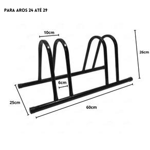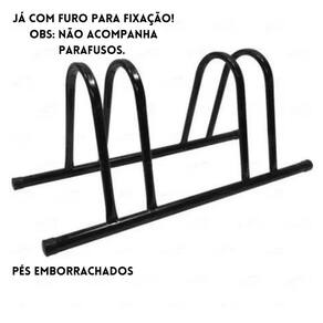 Suporte Para Bicicleta 2 Vagas Porta Bike Em Pé Piso Chão Manter sua bicicleta em segurança e de forma organizada nunca foi tão simples. Apresentamos o suporte de bicicleta de chão, a solução perfeita para quem valoriza sua bicicleta e deseja mantê-la sempre em perfeito estado. Comodidade, qualidade e praticidade têm que estar associadas, com o suporte expositor de chão você decide onde e quando vai guardar a(s) sua(s) bicicleta(s), seja na sala, no quarto, na sacada, na garagem, em estabelecimentos comerciais ou em qualquer outro local de sua preferência. Nosso suporte é aprovado para garantir que sua bicicleta permaneça fixa e estável, evitando que ela caia ou estrague outros objetos ao redor. Além de todos esses fatores, é importante ressaltar que o suporte de bicicleta de chão é uma excelente opção para presentear amigos e familiares que são apaixonados por bicicletas. Seja para uso em casa, na garagem ou até mesmo em estabelecimentos comerciais, este suporte é a garantia de que sua bicicleta estará sempre bem cuidada e pronta para o próximo passeio. Capacidade Dupla: Ideal para quem possui mais de uma bicicleta, nosso suporte de chão tem capacidade para duas bicicletas, otimizando o espaço e organizando seu ambiente. Características: Material: Aço carbono Cor: Preta Pintura: Eletrostática Capacidade: 02 vagas Marca: Jaddi Fácil para estacionar Ideal: Estacionamento de lojas, vias públicas, escolas, supermercados, residências entre outros... Dimensões do Porta Bicicleta 2 Vagas: Altura: 26cm Largura: 25cm Comprimento: 60cm Conteúdo da Embalagem: 01 Porta Bicicleta 2 Vagas de Chão *Imagens meramente ilustrativas Garantia 3 Meses contra defeito de fabricação