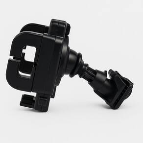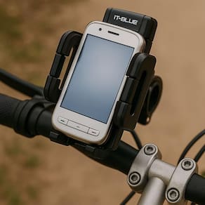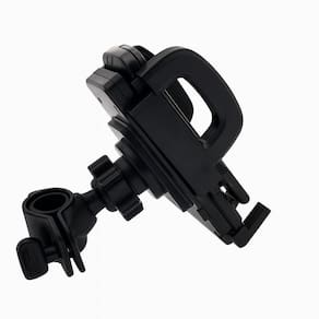 Estrutura em plástico ABS de alta resistência. Fixação prática e ajustável no guidão. Sistema de trava que impede o de se soltar durante o trajeto. Almofadas internas emborrachadas que protegem contra riscos e arranhões. Rotação 360 com articulação esférica, permitindo uso na vertical ou horizontal.