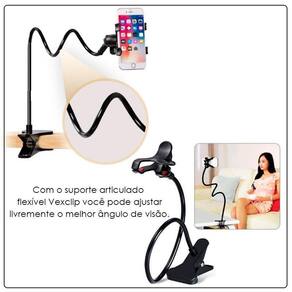Suporte universal articulado para Celular foi desenvolvido para maioria de produtos digitais com abertura máxima de 12 cm. É compatível com aparelhos de diversas marcas. Com o suporte articulado flexível Vexclip, você pode ajustar livremente o melhor ângulo de visão e tem a flexibilidade de giro 360 graus. O grampo de fixação tem abertura máxima de 12cm. Pode ser utilizado na cama, na mesa, na cozinha, no escritório e em qualquer superfície onde possa prender o grampo, ou seja, você irá fixá-lo em qualquer lugar que queira ficar.