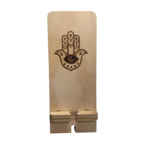 Suporte para cer Fátima Hand Special Engraving projetado com espaço para cabos e estabilizado na carga durante o uso, construído em Terciado de 12 mm e com acabamento em laca de água transparente para não perder os belos veios. Medidas Largura: 8cm Fundo: 8,5 cm Altura 21 cm.