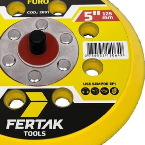 Diâmetro:125mm Material: Base resistente com camada aderente para discos de lixa Compatibilidade: Lixadeiras roto-orbitais de 125mm com sistema aderente Tipo de fixação: tecido adesivo