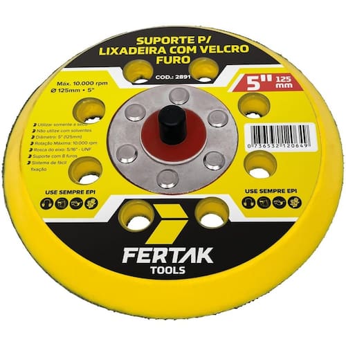 Fabricado com materiais resistentes e de alta qualidade, o suporte oferece durabilidade superior e excelente absorção de impactos. Seu design com 6 furos melhora a extração de poeira, reduzindo o acúmulo de resíduos e aumentando a vida útil tanto do suporte quanto do disco de lixa.