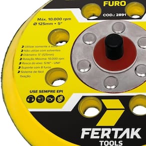 Diâmetro:125mm Material: Base resistente com camada aderente para discos de lixa Compatibilidade: Lixadeiras roto-orbitais de 125mm com sistema aderente Tipo de fixação: tecido adesivo