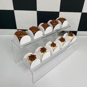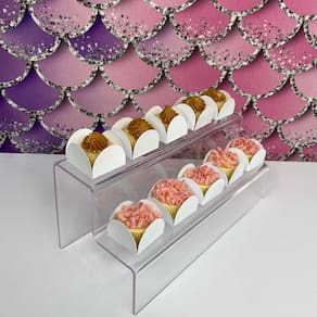 Combina com qualquer decoração, trazendo uma variedade de alturas e destaques para as decoração de sua mesa de bolos.