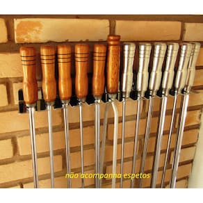 Além disso, esse suporte é de fácil instalação e acompanha buchas e parafusos para fixação. Basta escolher o local desejado na parede, fixar o suporte e pronto, seus espetos estarão organizados e ao alcance das mãos.
