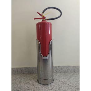 Suporte modelo batom, solo para extintores, em aço inox 430.Compatível com extintores a base de água 10 litros e Co2 06 kg.Medidas aproximadas do produto- Comprimento: 20 cm- Altura: 49 cm- Largura: 20 cm- Peso: 1200 g