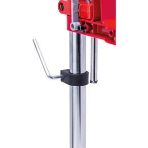 Características - largura do encaixe para furadeira: minimo de 36,5mm e máximo de 43mm - dimensão da mesa: 160x230x30mm - largura dos furos para fixação: 6mm - curso da alavanca: 60mm - altura do encaixe até a base: 320mm - altura total: 500mm