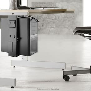 A versatilidade do PLMSC03 é notável. Seu ajuste de largura se adapta a uma ampla gama de tamanhos de gabinete, enquanto o ajuste de altura (300-533mm) permite posicionar a CPU em uma altura ideal para você. A instalação embaixo da sua mesa maximiza o espaço e a organização, evitando que poeira e outros detritos contaminem a área interna da sua CPU, prolongando sua vida útil.
