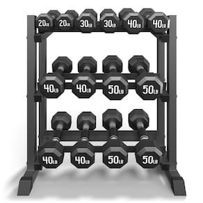 - Material resistente: Feito de aço de grau comercial resistente e uma estrutura resistente, nosso suporte para halteres oferece durabilidade e confiabilidade incomparáveis. Sua estrutura sólida soldada garante estabilidade excepcional, enquanto os parafusos de liga de aço de alta qualidade de grau 8,8 reforçam seu design robusto. Para melhorar ainda mais a segurança, o rack possui quatro tampas de borracha que protegem seu piso de arranhões, absorvem choques e evitam escorregões. Além disso, o revestimento em pó durável mantém a aparência impecável mesmo sob uso pesado