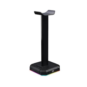 Nome: Suporte para Headset Redragon Scepter X Preto Marca: Redragon Part Number: HA312 EAN: 6950376707499 Características: - Suporte de headset Redragon Scepter com Hub USB e conexão para Headset - Iluminação RGB com 10 efeitos - Três portas USB 2.0 e 3x 3.5mm - Base antiderrapante Especificações: Material: Plástico ABS Cor: Preto Hub USB: 3x USB 2.0 Conexões 3.5mm: 3 Conectividade: 1x USB Tipo C Iluminação: RGB Redragon Chroma Mk2 Tensão de trabalho: USB 5V 0,5 Corrente de trabalho: =120mA Peso Bruto g : 357 Peso líquido g : 255 Embalagem: 80mm L x 180mm A x 80mm P