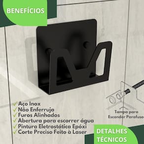 Com um design minimalista, o preferido pelos arquitetos nos últimos tempos, o Porta Barbeador é fabricado utilizando aço inox com acabamento em Pintura Eletrostática Epóxi Fosca proporcionando maior durabilidade, resistência e garantindo que não ocorrerá oxidação nem ferrugem.