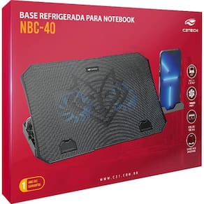 Suporte Para Nbc-40bk C3tech Modelo: NBC-40BK O Suporte Para NBC-40BK da C3Tech é o modelo perfeito para os momentos de trabalho ou lazer. Possuindo ajuste de altura em cinco níveis para um conforto ergonômico ideal, este modelo ainda é equipado com duas fans embutidas, mantém o fresco durante todo o uso. Além disso, a porta USB extra garante conectividade sem preocupações.
