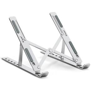 - Suporte para Notebook e Macbook em alumínio - 10 à 17 Polegadas. - Eleve a altura do seu notebook para posição de visualização confortável, evitando dor no ombro e na coluna. - Suporte com diversas opções de altura, diversificando as possibilidades de uso. - Material de alta qualidade, liga de alumínio, resistente e muito bem acabado. - Design com silicone nos pontos de apoio, permitindo que se coloque a máquina de forma estável evitando que acidentalmente balance, arranhe ou se movimente.