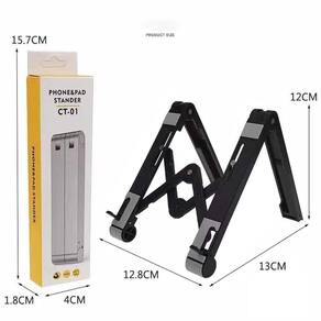 Cores: Preto Tipo de suporte: Dobrável/Portátil Materiais: Plástico e Borracha Silicone Comprimento: 24 cm Largura Mínima: 4,5 cm Largura Máxima: 16,5 cm Elevação Mínima: 5 cm Elevação Máxima: 14,5 cm