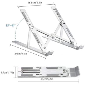 Suporte De Notebook Ajustável Alumínio - PRÁTICO, PORTÁTIL e BEM FIRMEO suporte para notebook contem 8 ângulos de regulagem que permite que a tela fique na altura dos olhos, o que evita o desconforto na região do pescoço e dores na coluna. Possui uma excelente construção em alumino premium, um material leve e bem resistente, as borrachas antiderrapantes deixam o notebook bem firme e estável na mesa.CARACTERISTICAS:- Compatível com todos os notebooks e tablets de 10 a 17 polegadas- Feito em alumínio premium, material resistente e leve- Contem 8 ângulos de ajuste ergonômico- Evita o desconforto na região do pescoço e dores na coluna- Contem bora=rachas antiderrapantes, deixa o notebook bem firme- Dobrável, fácil de guardar, ideal para levar aonde quer que forITENS INCLUSOS:-01 Suporte Para Notebook-01 Case de armazenamento Marca: Kaizu Imports