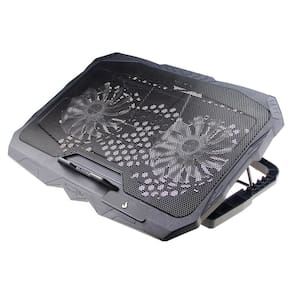 A superfície de metal confere durabilidade e uma estética premium ao suporte, proporcionando um local seguro para o seu notebook. Equipado com dois fans de 14cm, iluminados por LEDs azuis, oferece um resfriamento adicional para manter o seu laptop em condições ideais durante longas sessões de uso.