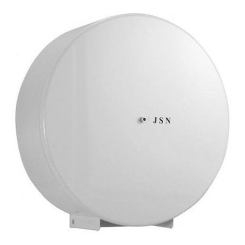 Produzido em chapa de aço carbono 1020 e acabamento pintura eletrostática branca epóxi . O sistema de fechamento é feito através de fechadura central tipo Allen, que mantém o produto trancado, evitando, assim o furto do papel, bem como a abertura indevida da tampa do suporte, possui visor para controle da reposição do papel.
