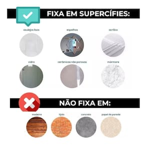 Incorreto: superfícies curvas, foscas ou porosas como papel de parede, madeira, parede de cimento, mármore, granito, etc.