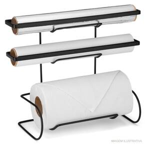 O Suporte para Papel Toalha Arthi em Alumínio com Cortador Preto é ideal para colocar papel toalha, papel filme e papel alumínio. Com exclusiva serra para corte, deixando sua cozinha mais pratica e organizada.