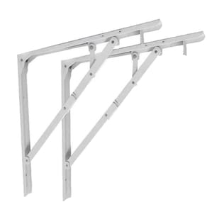 Muito versátil para os mais diversos tipos de decorações, o suporte pode ser utilizado para prateleiras, bancos, mesas ou qualquer outra necessidade de madeira a economizar bastante espaço quando não for utilizado.