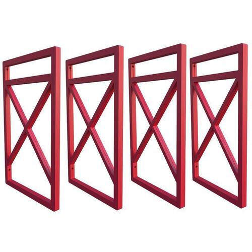 atenção os suportes enviados são os que não enferruja e não descasca pintura. Local de fixação: parede não acompanha as madeiras. Suporte: 4 peças - altura total = 37cm - largura interna = 20cm - espessura do tubo maciço em plástico = 15x15mm - distância entre madeiras = 25cm - cor = vermelho - peso suportado = 60kg - indicado utilizar um suporte a cada 60cm de distancia