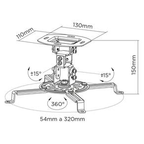 O suporte para projetor PRO100 ELG é indicado para instalação em tetos de alvenaria ou vigas de madeira e aplicável com projetores até 13,5Kg que possuam 3 ou 4 pontos de fixação roscados. O afastamento entre os pontos roscados presentes no projetor deve ser entre 54 e 320mm diâmetro para alcançar as hastes do suporte.A base é fixa com distância do teto até o projetor de 15cm.Ajuste preciso da imagem projetada. Possui várias opções de ajustes, como rotação até 360°, ajuste de ângulo vertical e horizontal de +/-15° e ajuste para teto inclinado.Produzido em aço carbono com tratamento anticorrosão e pintura epóxi eletrostática de alta resistência, aliando durabilidade, segurança e excelente acabamento. Garantia de 03 anos.