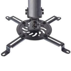 O suporte para projetor PRO1100B ELG é indicado para instalação em tetos de alvenaria ou vigas de madeira e compatível com projetores até 13,5Kg que possuam 3 ou 4 pontos de fixação roscados. O afastamento entre os pontos roscados presentes no projetor deve ser entre 54 e 320mm diâmetro para alcançar as hastes do suporte.A base possui regulagem de altura com distância mínima do teto até o projetor de 54,5cm e máxima de 90cm.Ajuste preciso da imagem projetada. Possui várias opções de ajustes, como rotação até 360 graus, ajuste de ângulo vertical e horizontal de +/-15 graus e ajuste para teto inclinado.Produzido em aço carbono com tratamento anticorrosão e pintura epóxi eletrostática de alta resistência, aliando durabilidade, segurança e excelente acabamento. Garantia de 03 anos.