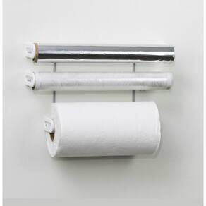 Suporte para Papel Toalha e Rolos 3 em 1, em Aço Termoplastificado E Plástico. Acomoda 3 Utilidades: 1 Rolo De Papel E 2 Embaladores.Funcional, de fácil limpeza e rapida instalação, acompanha dois parafusos com buchas. Manter a cozinha e a bancada em ordem é possível com os itens corretos. O Suporte para Rolos - Suporte para Papel Toalha, papel Aluminio e Filme otimiza da melhor forma os espaços da cozinha, pois este produto é fixado na parede e a bancada fica livre e limpa. Dimensões:31 cm largura x 7,5 cm profundidade x 19 cm altura . Peso:1300 g. Material:Aço com revestimento termoplástico, plastico. Conteúdo:01 Suporte para Rolos - Suporte para Papel Toalha, papel Aluminio e Filme Cuidados especiais:Limpe com um pano umedecido, não utilize palhas de aço, podem danificar o produto causando arranhões. Marca: Não Informado