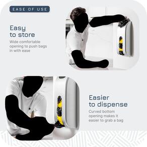 - O protetor de saco de plástico número 1: mantenha seus sacos plásticos prontos para reutilização em um suporte eficiente de sacolas de compras. Basta empurrá-los na abertura extra larga na parte superior para guardar. Precisa de uma bolsa? Puxe-o para fora do compartimento de distribuição inferior. O organizador de sacos de plástico mede 39,3 x 15,2 x 8,8 cm.