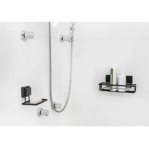 O Suporte de Shampoo com fixação por ventosas pode ser utilizado dentro do box com shampoos e condicionadores mas também próximo à pia do banheiro, com seus cremes hidratantes e demais itens de beleza. Sofisticação através do detalhe em aço Piatina (em formato achatado).Acabamento liso e fosco. A pintura a pó aplicada na peça garante uma excelente cobertura protetiva contra corrosão e alta resistência ao impacto. Instalação:Correto: superfícies lisas, brilhantes e totalmente planas como vidros, espelhos, azulejos, cerâmicas não porosas, pinturas lisas e brilhantes (epóxi) e laminados. Incorreto: superfícies curvas, foscas ou porosas como papel de parede, madeira, parede de cimento, mármore, granito, etc.Especificações:Matéria-prima: Aço Carbono + Plástico + BorrachaCor/acabamento: Preto FoscoCapacidade: 5KgCod - 8050PTCaixa Master - 4 un.Dimensões - 12,5 x 28 x A12cmEAN - 789649781616-2Embalagem - Cartela com Expositor