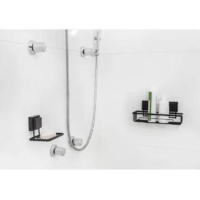 O Suporte de Shampoo com fixação por ventosas pode ser utilizado dentro do box com shampoos e condicionadores mas também próximo à pia do banheiro, com seus cremes hidratantes e demais itens de beleza. Sofisticação através do detalhe em aço Piatina em formato achatado .Acabamento liso e fosco. A pintura a pó aplicada na peça garante uma excelente cobertura protetiva contra corrosão e alta resistência ao impacto. Instalação:Correto: superfícies lisas, brilhantes e totalmente planas como vidros, espelhos, azulejos, cerâmicas não porosas, pinturas lisas e brilhantes epóxi e laminados. Incorreto: superfícies curvas, foscas ou porosas como papel de parede, madeira, parede de cimento, mármore, granito, etc.Especificações:Matéria-prima: Aço Carbono + Plástico + BorrachaCor/acabamento: Preto FoscoCapacidade: 5KgCod - 8050PTCaixa Master - 4 un.Dimensões - 12,5 x 28 x A12cmEAN - 789649781616-2Embalagem - Cartela com Expositor