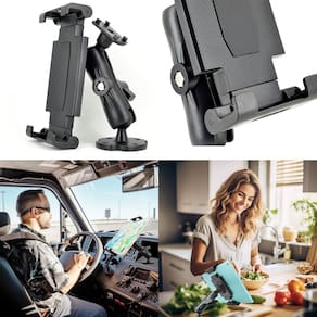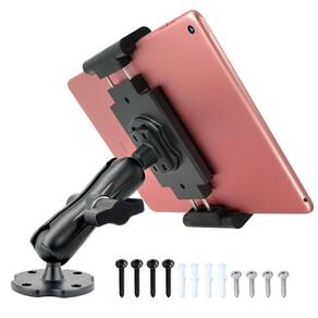 VAUBORTTI Base de broca de suporte de tablet resistente de braço de alumínio - para tablet iPad Pro/Mini de 6,5 a 12,9 polegadas, suporte de iPad para caminhão, carros, painel, mesa, montagem na - Liga de alumínio. O braço de soquete duplo do suporte para tablet é fundido de liga de alumínio e a base é formada por um componente de liga de alumínio fundido de peça única com uma bola de TPU de alta dureza moldada por injeção na parte superior. A fundição em peça única garante sua durabilidade e resistência à quebra. - Resistente devido à sua estrutura de liga de alumínio, este tablet tem capacidade excepcional de suporte de carga. O braço de soquete duplo traduz eficientemente a força aplicada pelo botão, garantindo que, depois de apertado, o ângulo desejado seja mantido firmemente no lugar. Mesmo em estradas esburacadas, ele permanece sólido, o que o torna uma escolha confiável para proteger seu tablet - Universal O suporte para tablet utiliza um mecanismo de mola, acomodando tablets que variam de 16,5 cm a 32,8 cm, incluindo marcas populares como iPads e Galaxy Tabs e muito mais. Feito de material ABS premium, o grampo possui quatro pontos de contato, cada um equipado com almofadas antiderrapantes de silicone e limitadores integrados. Ele segura com segurança tablets com uma espessura de até 1,6 cm, garantindo uma aderência confiável em todos os momentos. - Multiuso: este suporte para iPad pode ser instalado em qualquer local com um diâmetro de 0,6 cm, e fornecemos parafusos M4*20 e M4*30, juntamente com âncoras de parede para montagem na parede. Isso permite que você instale o suporte em qualquer cenário que desejar, como no painel de um caminhão de van, grande equipamento, trailer; ao lado do leme de um iate, nas paredes de uma cozinha ou academia, ou em uma mesa de escritório. - Rotação livre. O suporte para tablet vem com duas juntas esféricas ajustáveis de 2,5 cm e é compatível com o sistema de montagem de 2,5 cm. O design exclusivo do braço de soquete duplo permite a montagem do tablet para a liberdade de ajustar os ângulos como desejar, encontrando o ângulo de visualização perfeito que se adapta ao seu conforto, mesmo que seja apenas em 1 grau. Alternar entre orientação paisagem e retrato também pode ser feito em um instante.