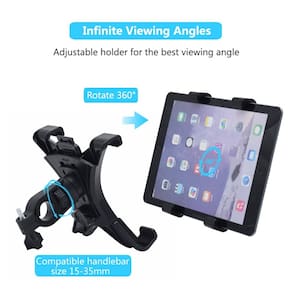 Suporte para tablet, microfone para e carregador de bicicleta, compatível com tablet de 7 a 12 polegadas, ângulo de rotação de 360° (para cima ou para baixo), suporte para tablet, , microfone tril e suporte de bicicleta, compatível com ângulo de rotação de 360° do tablet de 7 a 12" (para cima ou para baixo)