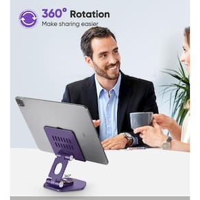 - ?Rotação de 360°? Suporte giratório para tablet utilizado em várias cenas da vida, compartilhe sua alegria e criação a qualquer momento, aproveite facilmente a conveniência da rotação de 360°, não é necessário mover o suporte tradicional do tablet para frente e para trás como antes. É um bom parceiro para iPad, é uma boa escolha para webcasting.