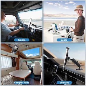 - Suporte universal para tablet: habilmente projetado para versatilidade, este suporte de iPad para caminhões se ajusta para segurar com segurança dispositivos que variam de 4,7 a 12,9 polegadas. Se você estiver montando um iPad Pro, Air, Mini, iPhone ou Samsung Galaxy Tab, nosso suporte robusto para iPad para caminhões é o acessório perfeito para caminhoneiros, marinheiros e passageiros, garantindo que seu dispositivo permaneça no lugar, não importa a viagem.