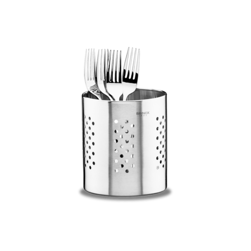 Alguns utensílios, além de facilitar a sua vida, deixam a sua casa muito mais bonita. Este é o caso do suporte para talheres da linha Parma. Inquebrável, o recipiente é prático, fácil de limpar e cheio de estilo. Os orifícios nas laterais, além de permitir que os talheres sequem mais rápido, também dão um charme à peça que pode ir da cozinha à mesa. O fundo do suporte ainda possui apoios salientes que o deixam levemente elevado em relação à superfície de apoio e permitem que a água escoe rapidamente. A peça tem ø 12cmx14cm de dimensão.