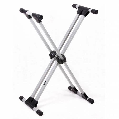 "Suporte Metálico em ""X"", para Teclado, modêlo profissional, com altura regulável de 74 a 100 cm. Sustentação dupla. Cód.Fabricante:62144339690 Aplicação: Para Teclado Dimensões: Altura máxima: 1000 mm Altura Minima: 660 mm Largura Máxima: 410 mm Largura Minima: 870 mm Comprimento: 405 mm Cor: Metálico"