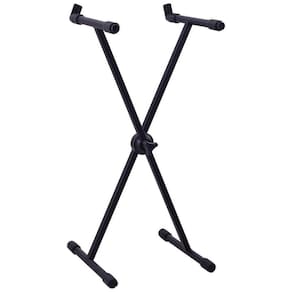 O suporte para teclados x10 possui estrutura em “x” com regulagem de altura, base e apoios em ferro e pintura eletrostática Menor que o x30, geralmente é usado na posição sentado, leve e pratico Capacidade 15 kg Peso 2,6 kg Dimensões comp. 43; alt. 92; larg. 12 cm