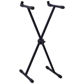 Suporte Para Teclado X10 Preto O Suporte para Teclados X10 possui estrutura em ?x? com regulagem de altura, base e apoios em ferro e pintura eletrostática Menor que o X30, geralmente é na posição sentado, leve e pratico Capacidade 15 Kg Peso 2,6 Kg Dimensões comp. 43; alt. 92; larg. 12 cm Ean: 7898962863626