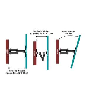- Distância da parede: mínima de 10 a 11 cm e máxima de 32 a 33 cm