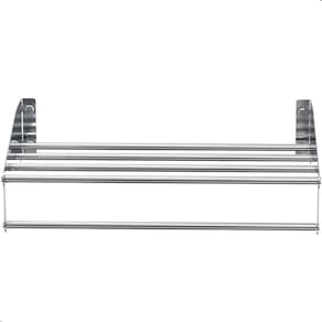 ESPECIFICAÇÕES TÉCNICAS Material das Laterais: Aço inoxMaterial dos Tubos: Alumínio Acabamento: Polido Alto Brilho Dimensões: Altura 8,5 x Largura 40,5 x Profundidade 25 Peso: 590g Fixação: Parafusos e buchas inclusos Uso indicado: Residencial e comercial (hotéis, pousadas, etc.)