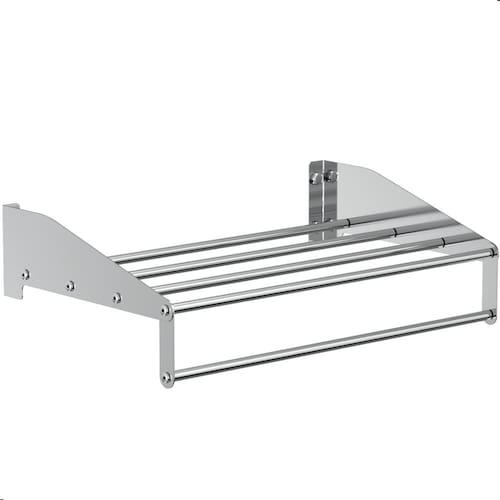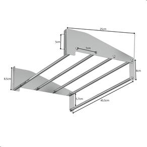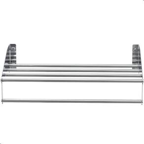 ESPECIFICAÇÕES TÉCNICAS Material das Laterais: Aço inoxMaterial dos Tubos: Alumínio Acabamento: Polido Alto Brilho Dimensões: Altura 8,5 x Largura 40,5 x Profundidade 25 Peso: 590g Fixação: Parafusos e buchas inclusos Uso indicado: Residencial e comercial (hotéis, pousadas, etc.)