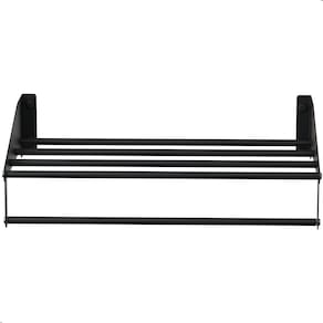 ESPECIFICAÇÕES TÉCNICAS Material das Laterais: Aço inoxMaterial dos Tubos: Alumínio Acabamento: Pintura Eletrostática EpóxiCor: Preto Dimensões: Altura 8,5 x Largura 40,5 x Profundidade 25 Peso: 590g Fixação: Parafusos e buchas inclusos Uso indicado: Residencial e comercial (hotéis, pousadas, etc.)