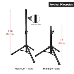 — capacidade máxima de peso de 130 libras; altura ajustável (2 a 4,5 pés); pernas de tripé robustas, expansíveis e longas fornecem estabilidade em qualquer ambiente