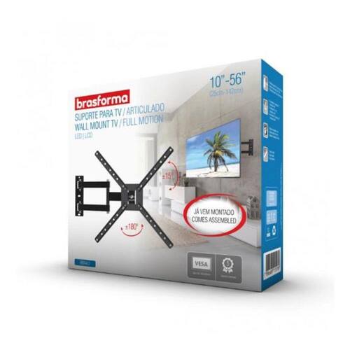 O Suporte Articulado Brasforma BRA4.0 para TVs LCD, LED, Plasma, 3D e Smart TV de 10 até 56 polegadas é compatível com VESA máximo de 400x400mm.